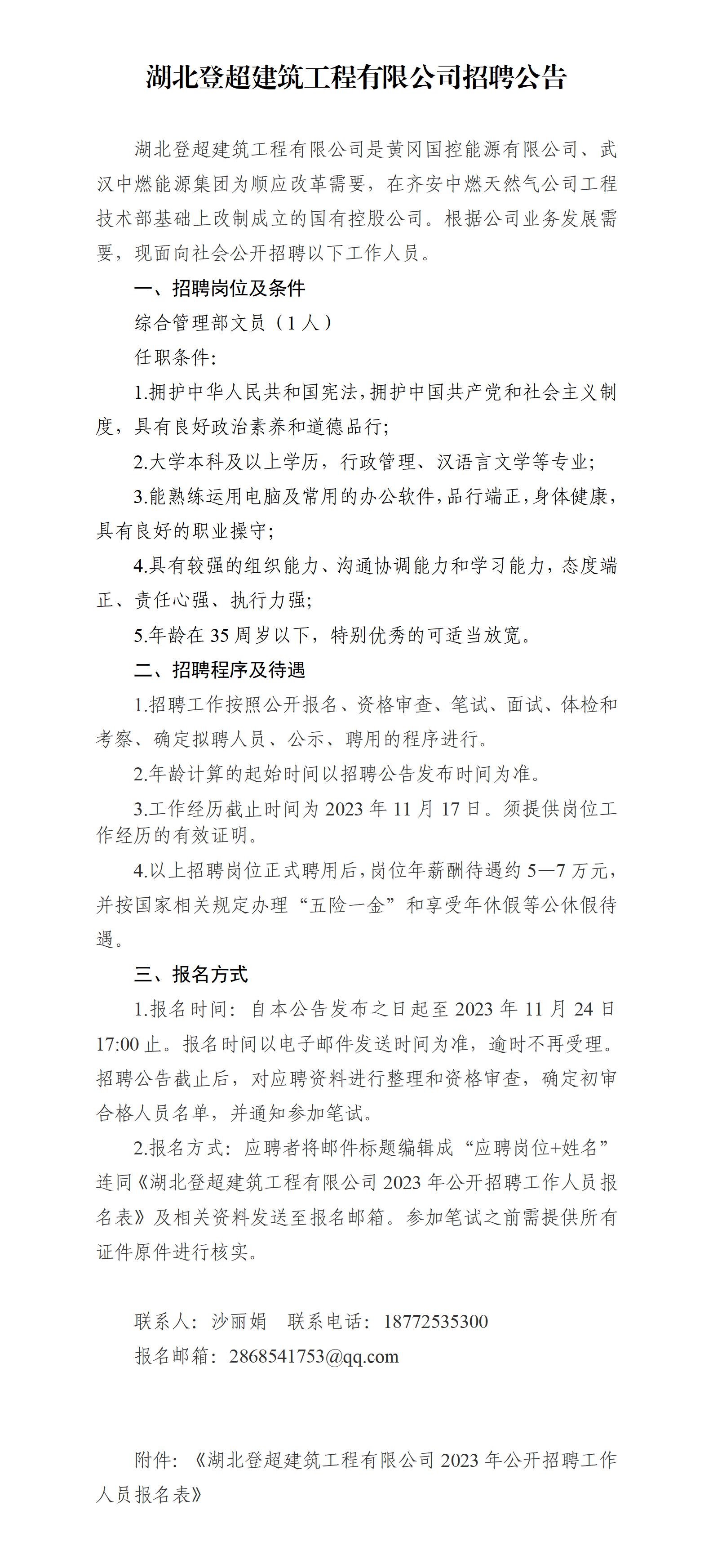 湖北登超建筑工程有限公司招聘公告